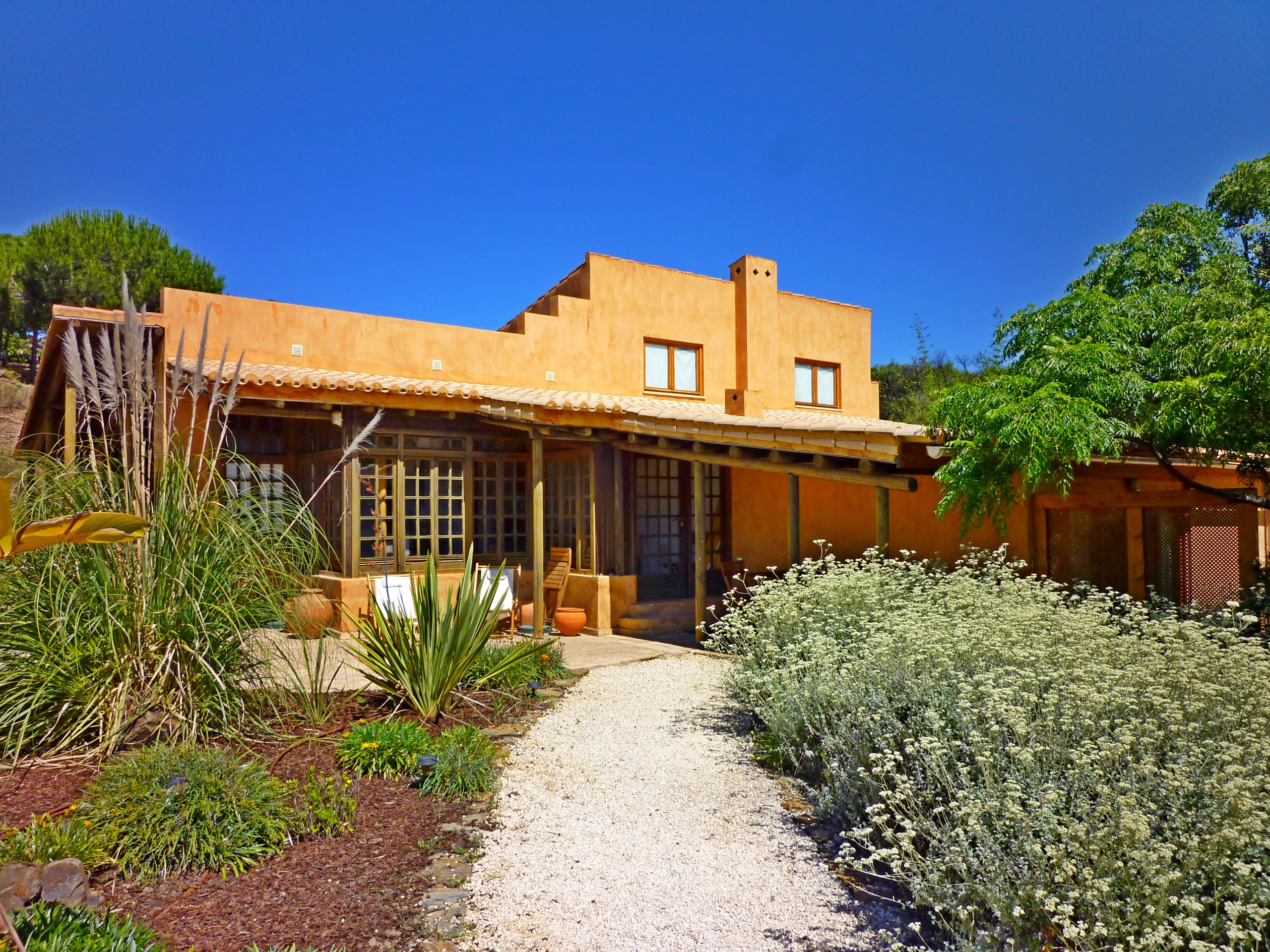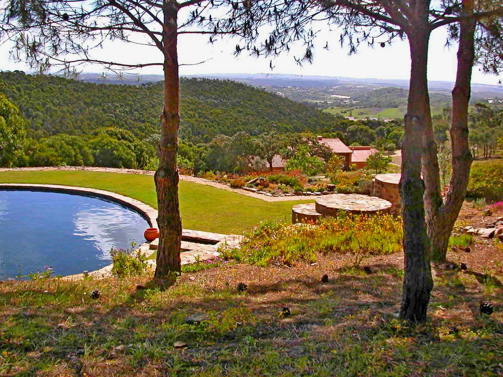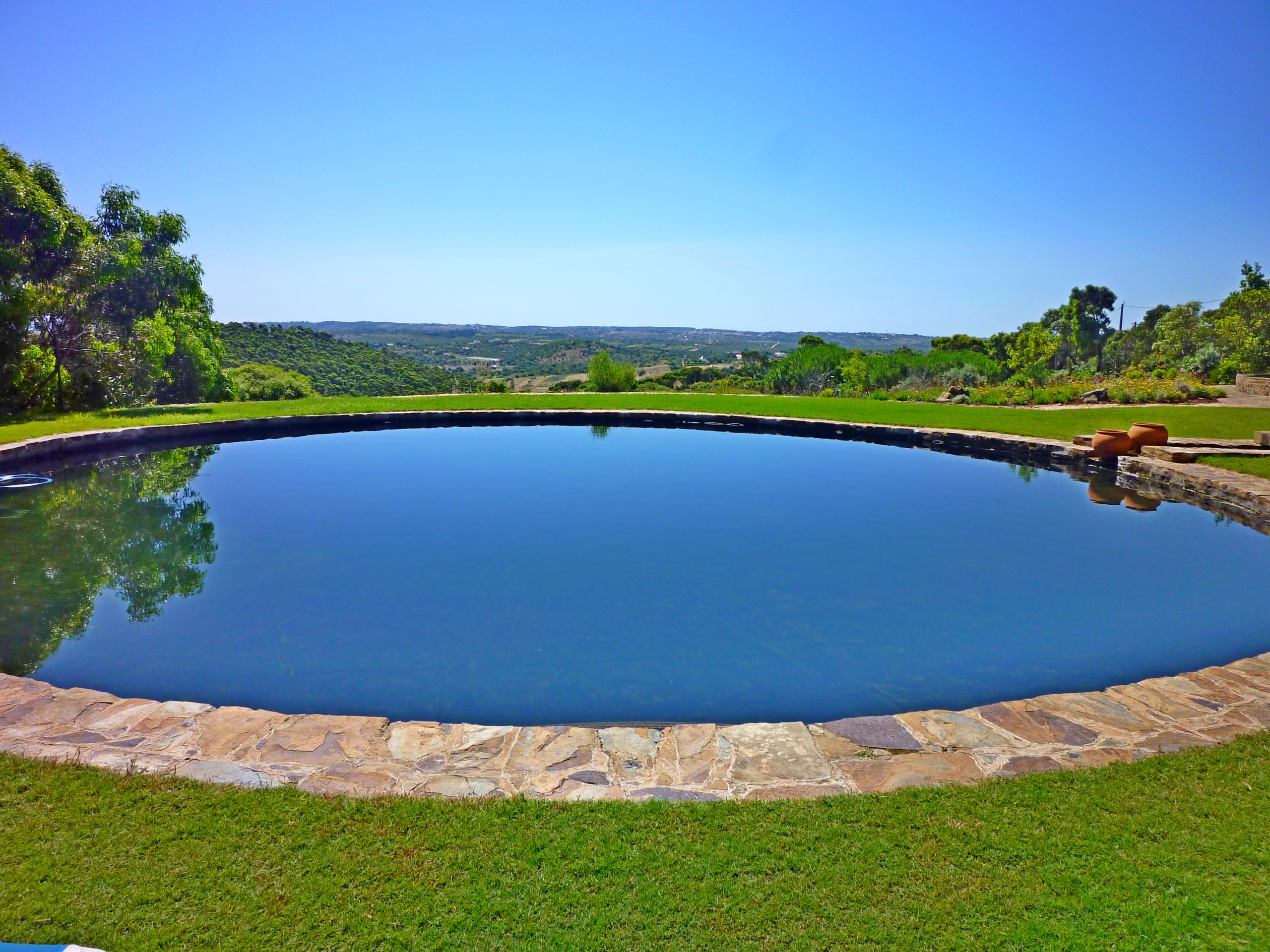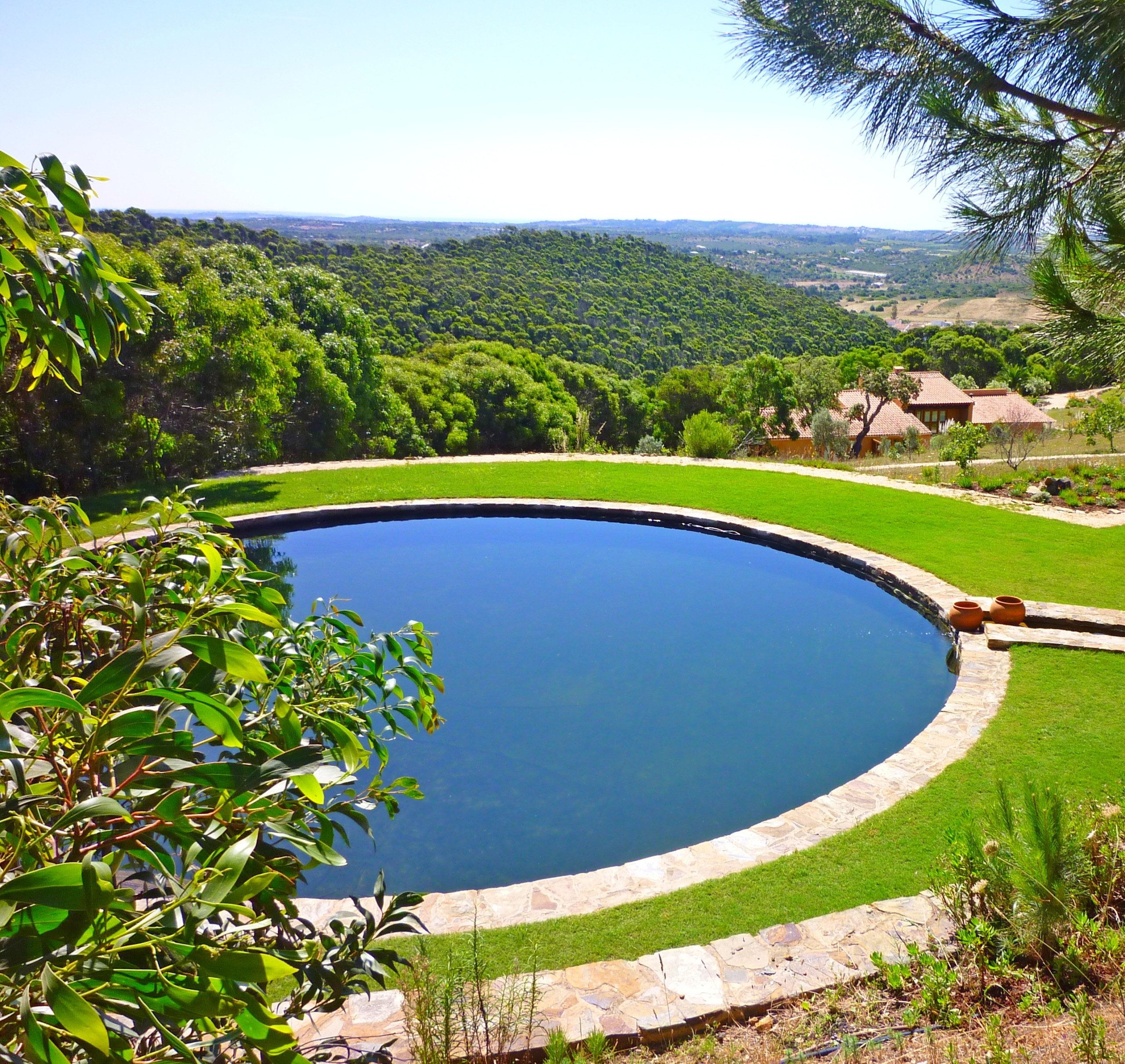 Um caminho conduz à piscina natural redonda situada mais acima, que é mantida limpa através de um sistema de filtragem sem produtos químicos; a limpeza da piscina é efetuada pelo menos uma vez por semana.