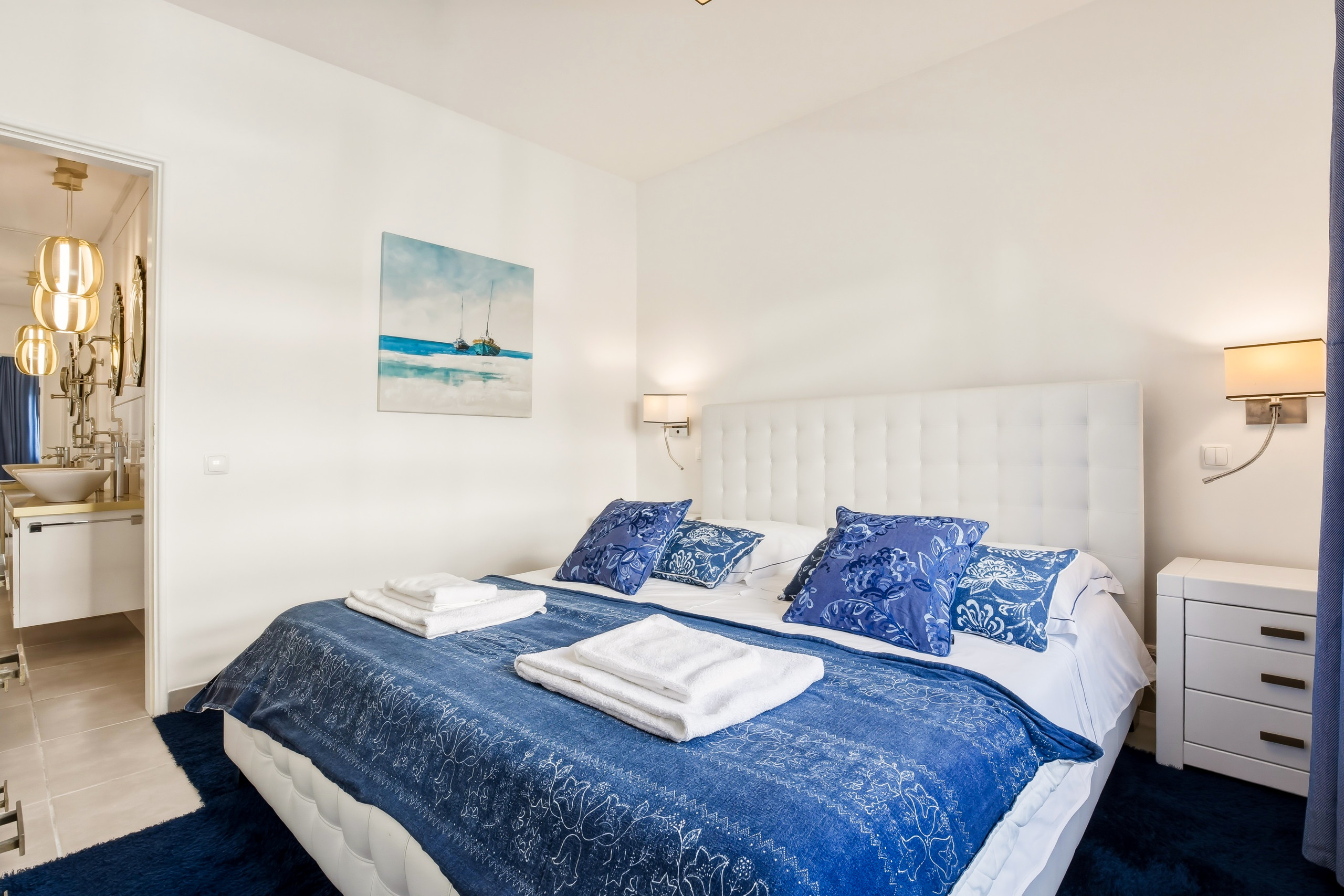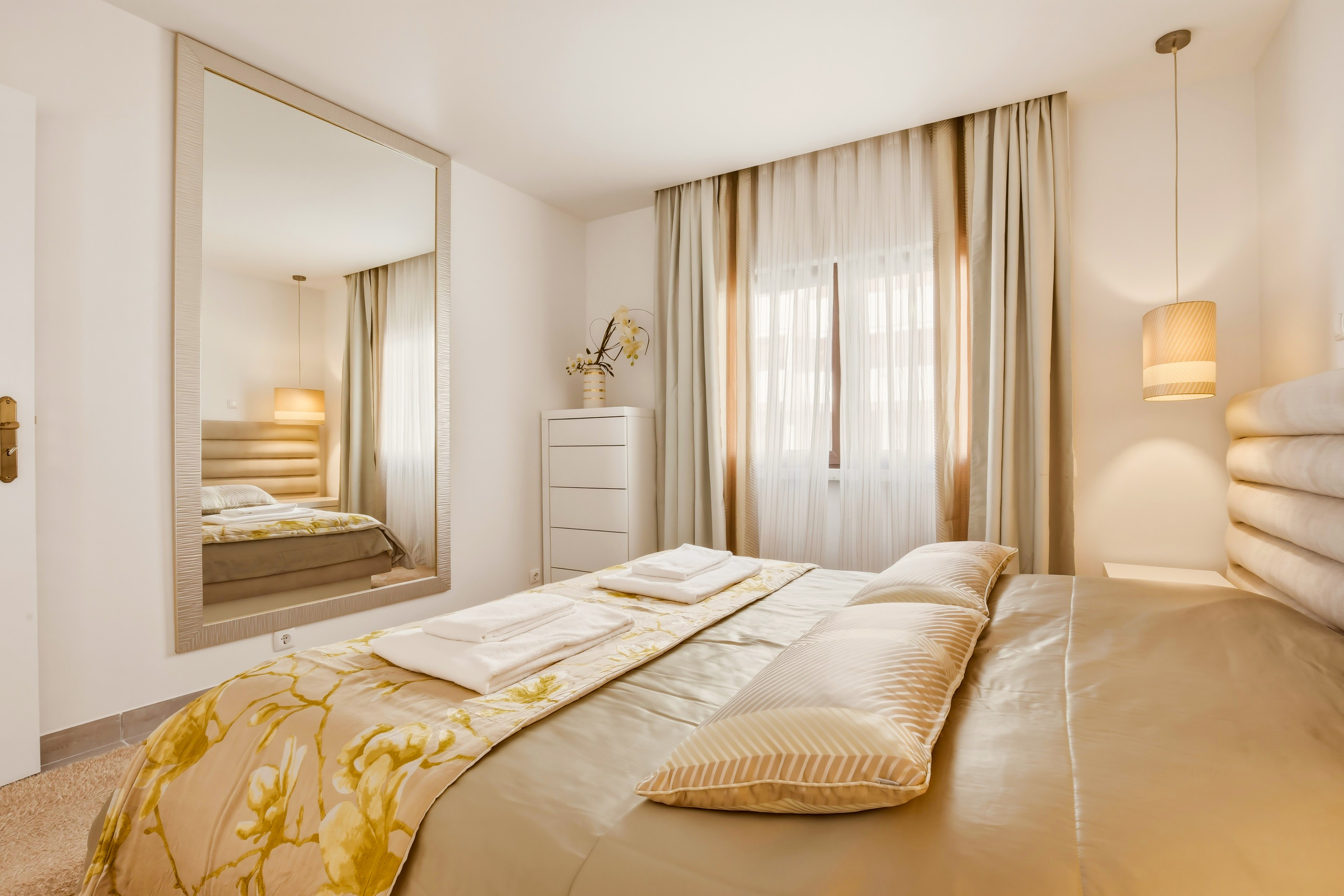 Die Schlafzimmer und Badezimmer liegen im rückwertigen Teil der Wohnung, ebenfalls high class, komfortable Bettenmit Qualitätsmatratzen, maßgeschneiderte Bettwäsche.